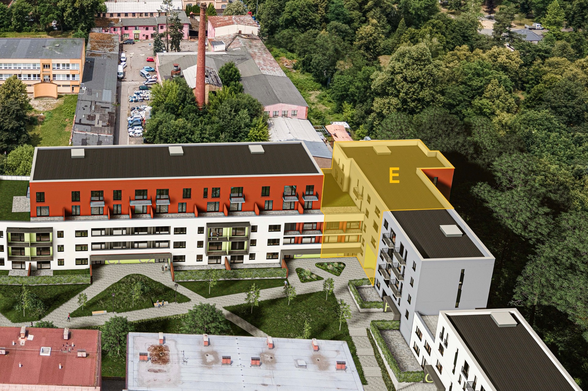 Momentálně jsou v prodeji byty v sekci E, které jsou již hotové a před kolaudací.Sekce E se skládá z 24 bytů 1+kk/2+kk a jednoho bytu 3+kk. V přízemí/podzemí se nachází garážové parkoviště. V 1. patře/přízemí se nachází 2 byty a skladovací kóje. Ve 2. NP a 3. NP se nachází 12 bytů a ve 4. a 5 NP se nachází 10 bytů. Jednotlivá podlaží jsou propojena schodištěm a výtahem.